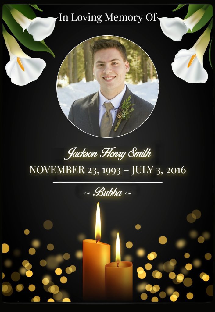 Jackson was born on November 23, 1993. Jackson was such a beautiful child, with the kindest spirit and sweetest soul, as he always treated others with kindness and respect. Jackson’s hobbies were snowboarding with his father and friends; skateboarding with his friends; computers; and his love of cars where he attended many local car shows as well as car shows in the bay area with friends. Jackson also loved his family with all his heart, always there to help his mother, father, grandmother, and siblings with anything that they needed. Jackson also had a wonderful sense of humor with the greatest laugh!